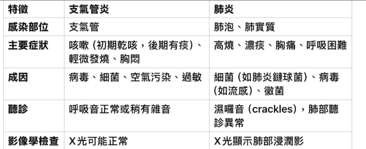 支氣管炎與肺炎的區別