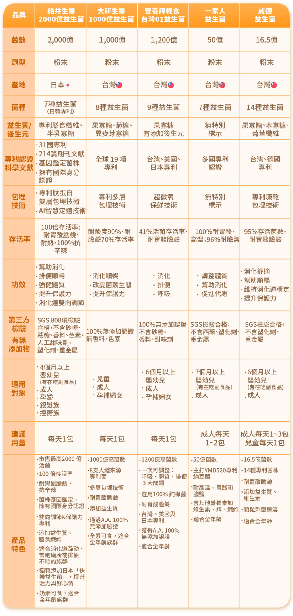 - 功效:消化順暢、改變菌叢生態、提升保護力