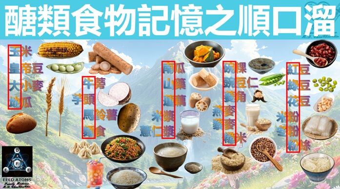必須警惕那些常被誤認為蔬菜或被忽略碳水化合物含量的食物。本文提供記憶口訣:『玉皇大帝、牛頭馬面、南山連江、紅綠花粉、婉菱麥造』,對應圖示為『玉皇大地、牛頭馬麵、南山蓮漿、紅綠花粉、碗菱麥糙』,以有趣諧音詩詞轉換表達常見醣類食物,加深醣類食物記憶印象,減少誤食過量醣類食物導致肥胖或高血糖。