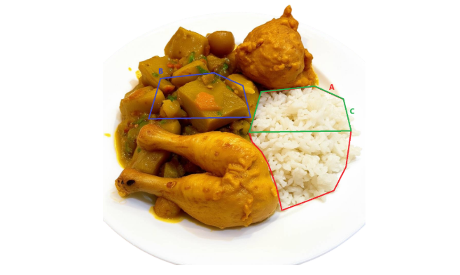 實際應用: 在用餐時,若將便當或咖哩飯中與玉米粒或馬鈴薯體積相同的白飯部分捨棄不吃,因為玉米和馬鈴薯的醣類及熱量在同體積下小於白飯,因此吃入的醣類總量及總熱量將會小於原本全部吃白飯的總量。