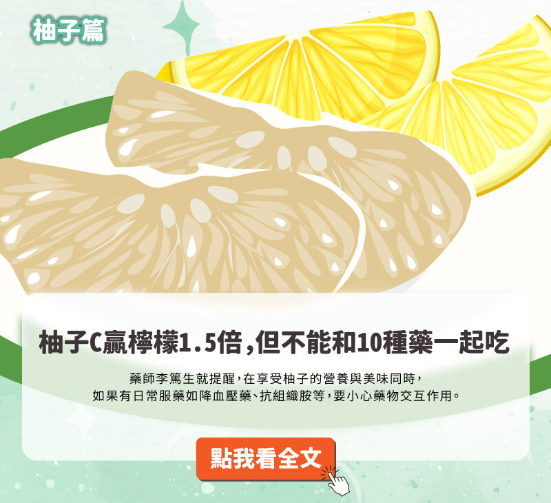 柚子高C、含鈣營養多多,但小心不能與10種藥並用