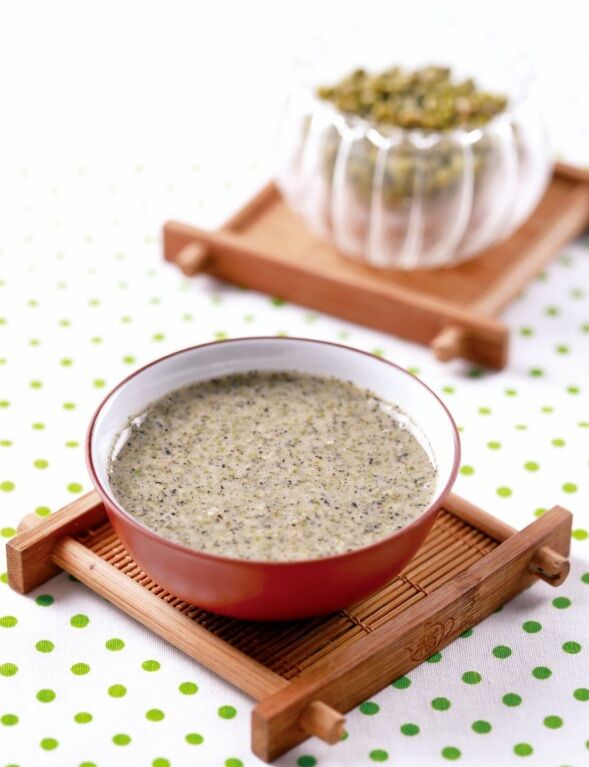 - 把綠豆和黑芝麻一起放入鍋中乾炒,直至炒熟。