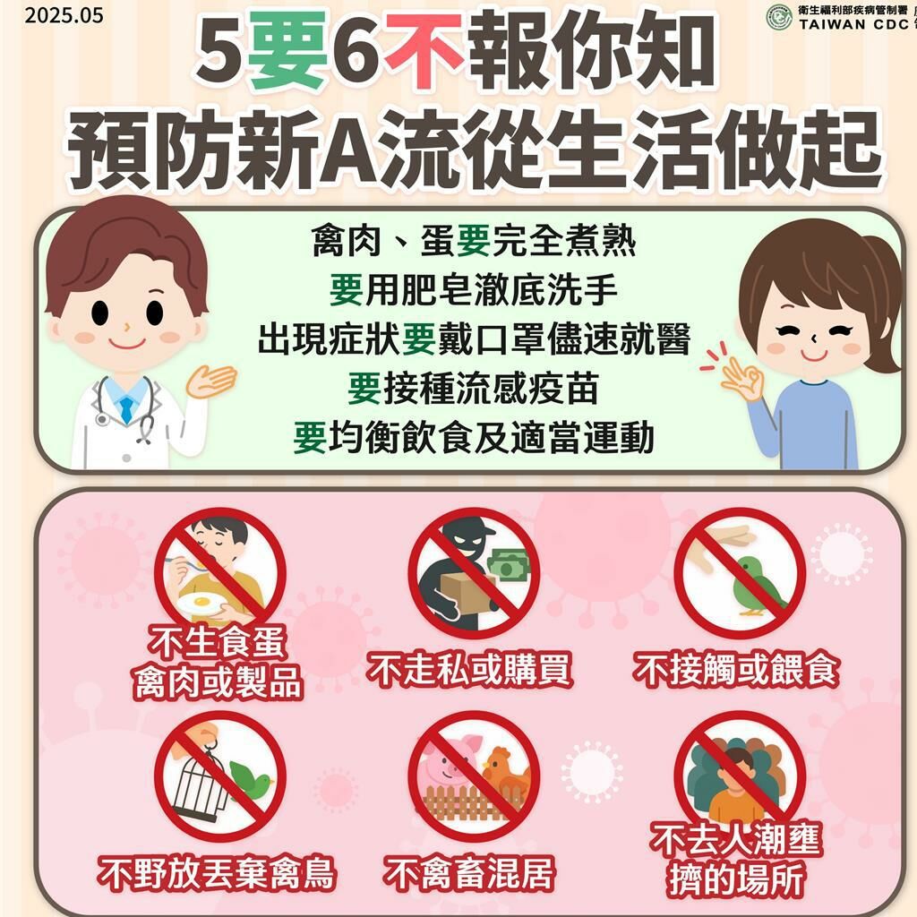 預防新型A型流感怎麼做?疾管署籲「5要6不」降低傳染機會