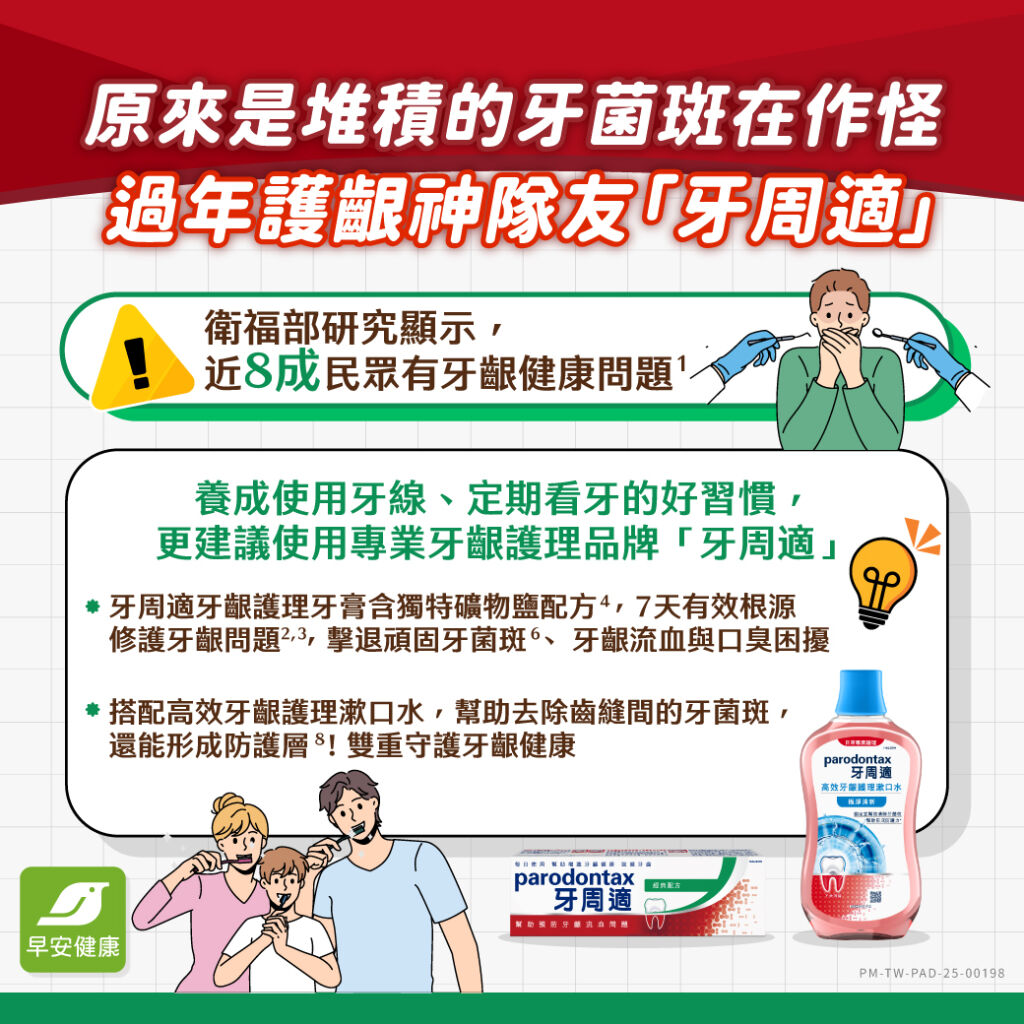 此篇文章由牙周適品牌贊助,有任何牙齒相關問題請諮詢牙醫師,對於牙周適產品有任何問題,請撥打消費者免費專線 0800-212-259