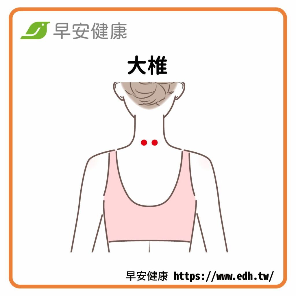 位在頸椎,低頭時會特別突出來的位置,只要用食指和中指按壓約15秒,就可以幫助促進新陳代謝、提升免疫力,進而達到預防感冒的效果。