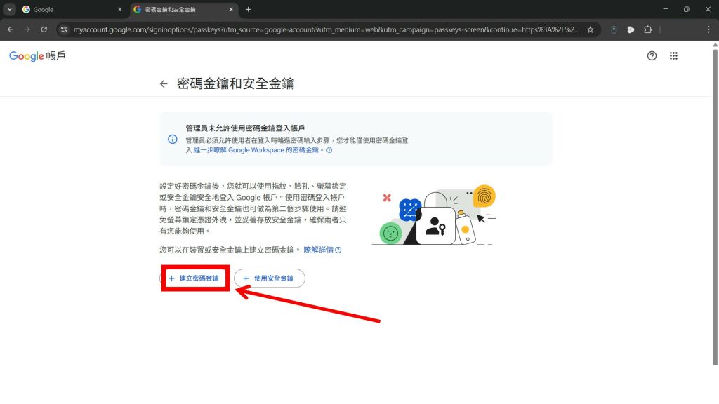 3.進入密碼金鑰的管理頁面,點擊「使用密碼金鑰」。
