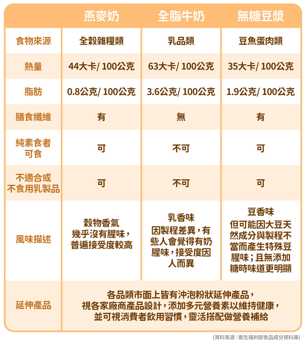 想要補充植物蛋白,植物奶是方便又有效率的方式之一,但市售植物奶營養成分差異不小,該如何挑選?何佳蓉營養師建議,40+族群在選擇時,可以優先挑選是否含有鈣質、膳食纖維等國人易攝取不足的營養素,選擇更適合自己的優質產品。