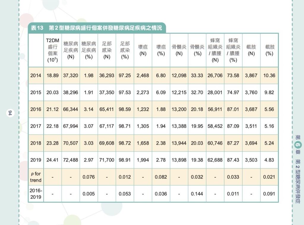 糖尿病足,這個聽起來有些遙遠的名詞,究竟有多常見,又有多危險?根據《2024年臺灣糖尿病年鑑》,全台糖尿病人口已逼近270萬人。光是2019年,就有超過7萬名第2型糖友併發糖尿病足,其中3,503人因此走上截肢的命運。(編輯推薦:認識18個糖尿病併發症:皮膚、眼睛、血管都要留意)