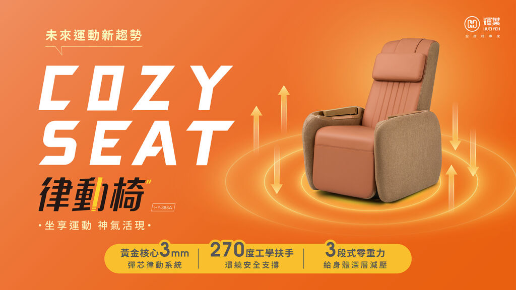 了解更多👇 輝葉 COZY SEAT垂直律動椅:https://hueiyeh.tw/U9tvv |