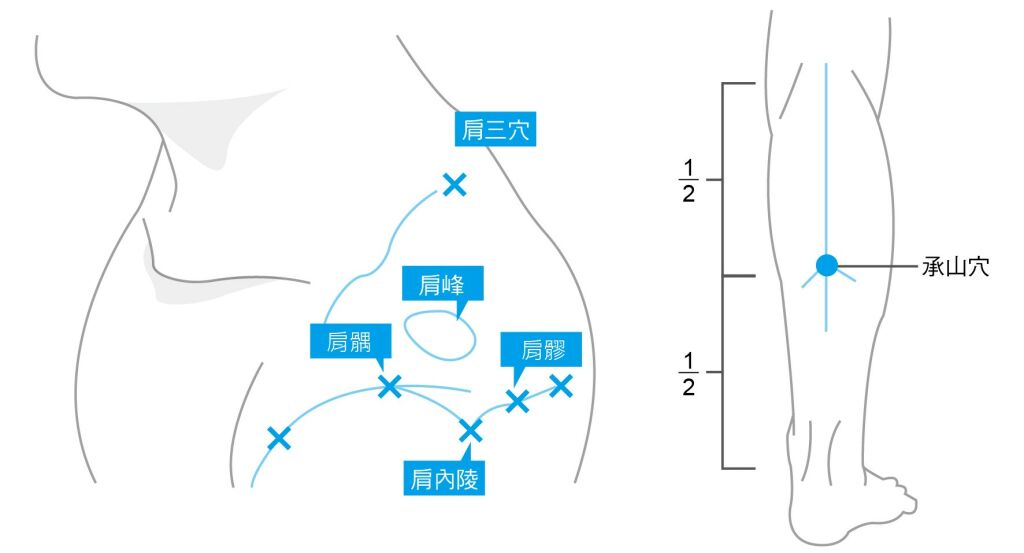例如,針灸刺激肩部的「肩三穴」,可以緩解局部疼痛;或著配合遠端經絡穴位,例如小腿的「承山穴」等,有助調節全身痛覺感受,降低痛覺敏感度。除了止痛,在五十肩進入沾黏期後,針灸也被用來協助鬆解沾黏。