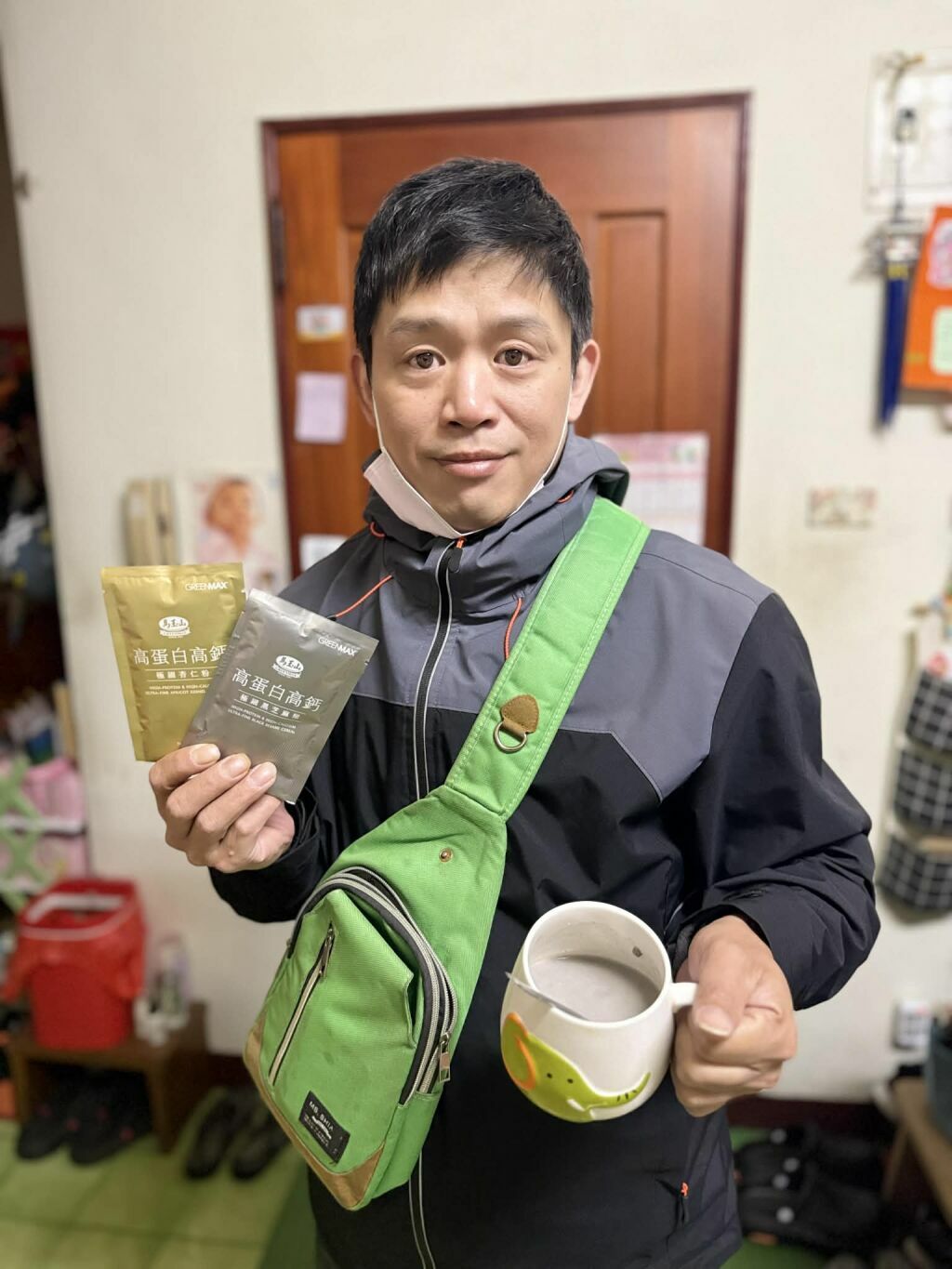 試用者陳俊安先生就分享,自己是一個43歲的外送員,常常跑單忙到顧不上吃飯,此時馬玉山高蛋白系列就是一個「好喝、營養又方便」的絕佳選擇!「趕單間隙30秒就能雪克一杯。」12g非基改大豆分離蛋白,快速補體力,又零膽固醇無負擔,適配高強度工作需求。口感香濃細膩,飽腹又解饞。同時高鈣護骨骼,再加豐富膳食纖維促消化,解決外送員飲食不均衡的困擾。