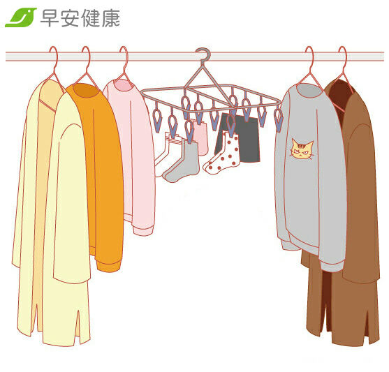 把衣服按照拱形的方式排列,也就是讓較長的衣服掛在外側、短的掛在內側(衣服間需保留約一個拳頭的距離),並在下方擺放揉皺的報紙、電風扇,一口氣達到吸濕、通風和加強對流的效果,只要10分鐘左右就能恢復乾爽。