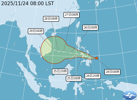 颱風季還沒結束!氣象粉專「天氣風險 WeatherRisk」指出,目前菲律賓附近有一熱帶擾動正在通過,預計週二(25)就會進入南海,並有逐漸發展的趨勢,日本氣象廳也預估該熱帶擾動最快週二上午就會生成為今年第27號「天琴」颱風,未來路徑將會一路往西前進,不會對台灣造成直接影響。