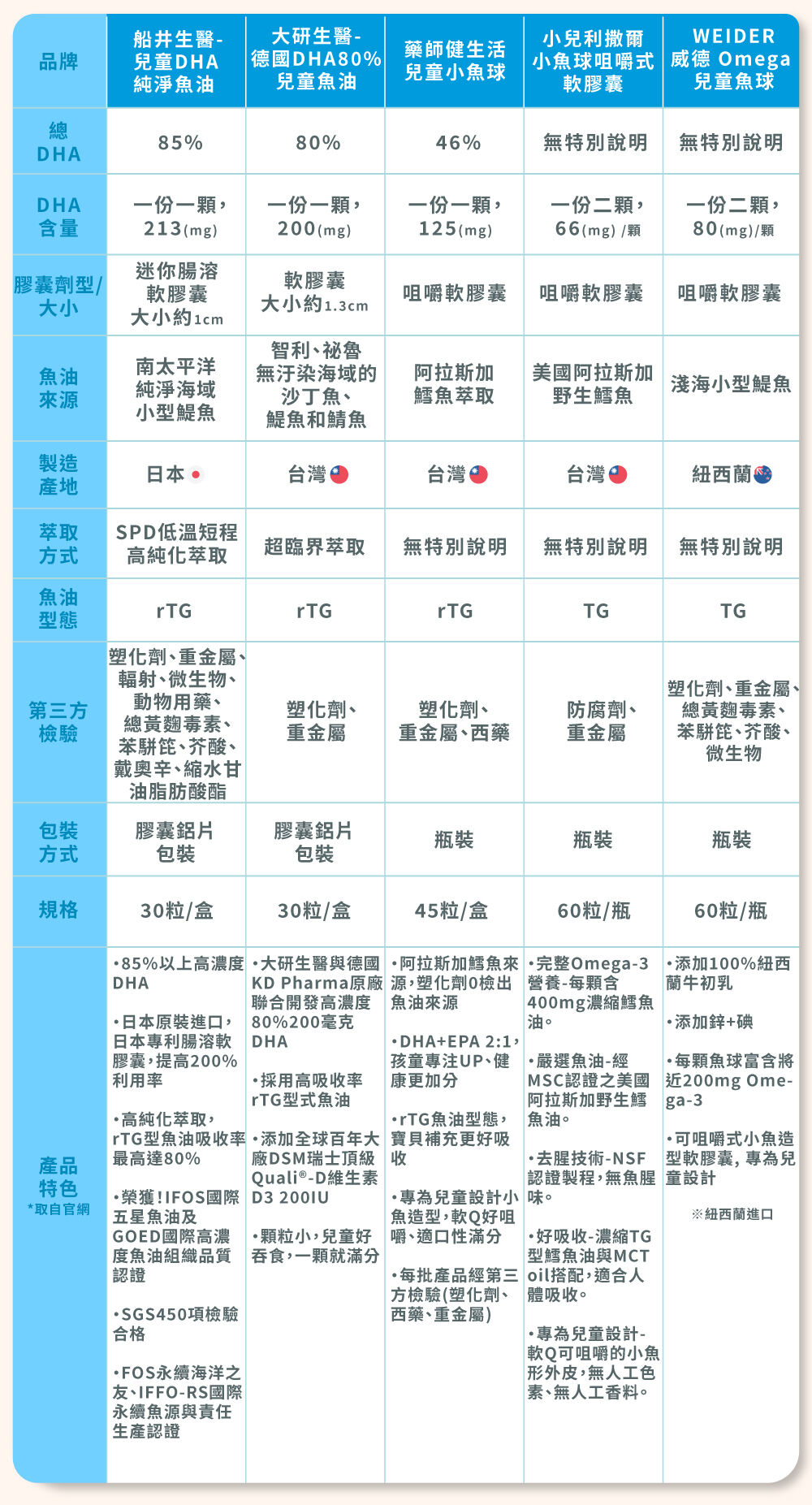 - 魚油來源:智利、祕魯無汙染海域的沙丁魚、鯷魚和鯖魚