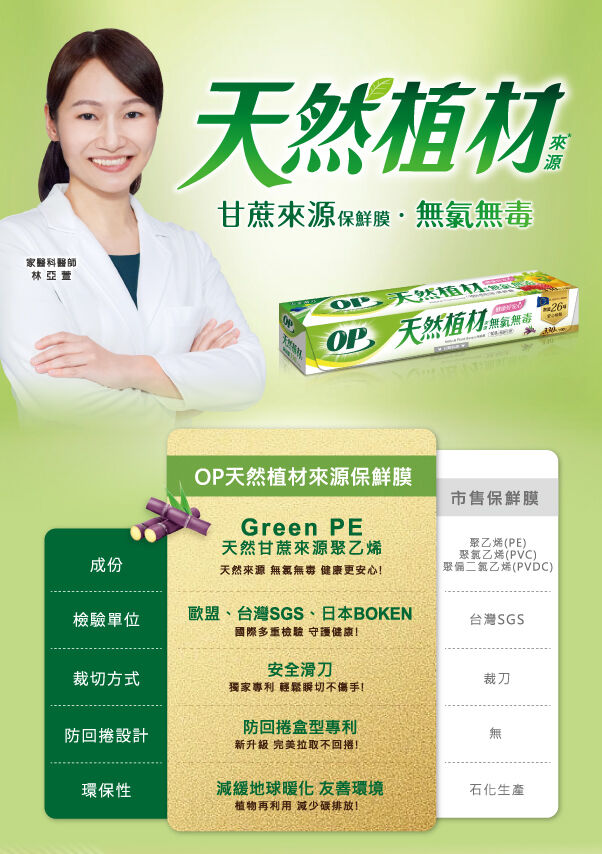 林亞萱醫師推薦 無氯無塑化劑OP天然植材保鮮膜