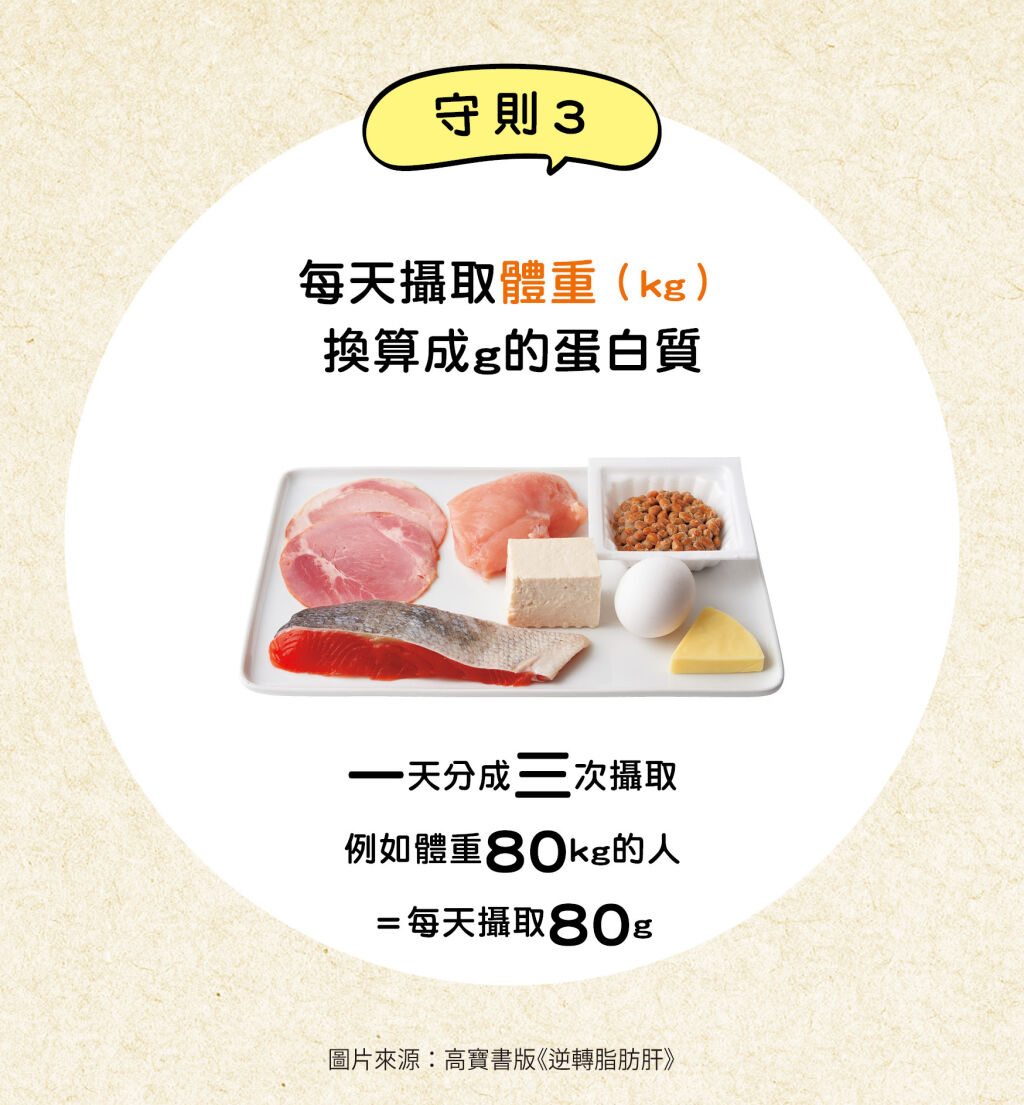 守則3:每天分3次攝取「體重(kg)換算成g」的蛋白質
