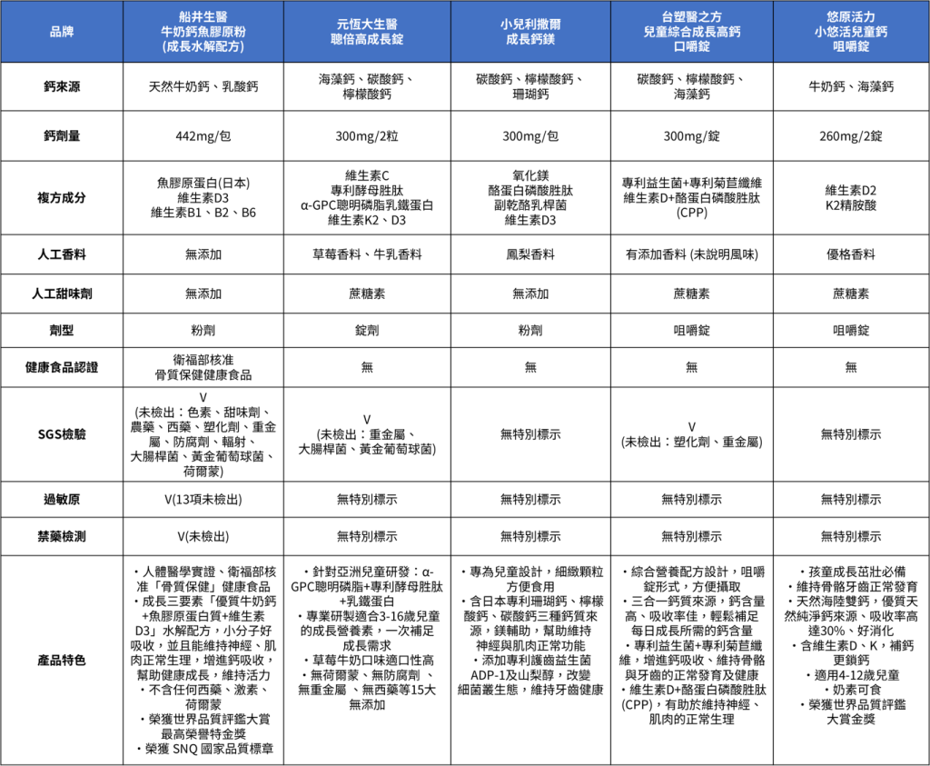 • 鈣來源:天然牛奶鈣、乳酸鈣
