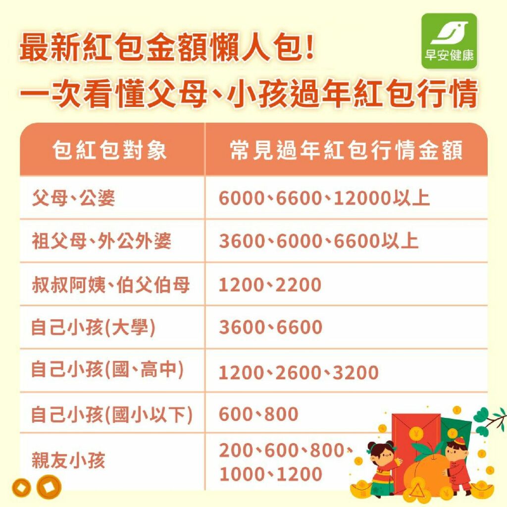 2026過年紅包建議金額一覽表
