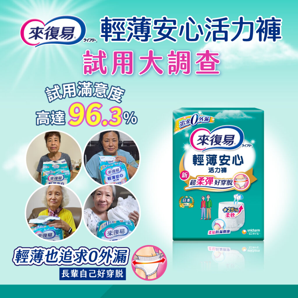 96.3%試用者真心好評!「來復易輕薄安心活力褲」