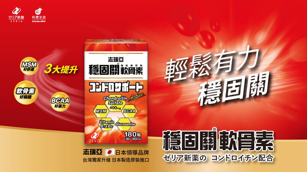 因應這樣的日常行動需求,日本專注行動力相關營養設計超過 60 年的志瑞亞新藥工業株式會社,推出複方設計的「穩固關軟骨素」,由科懋生技取得台灣獨家代理權。
