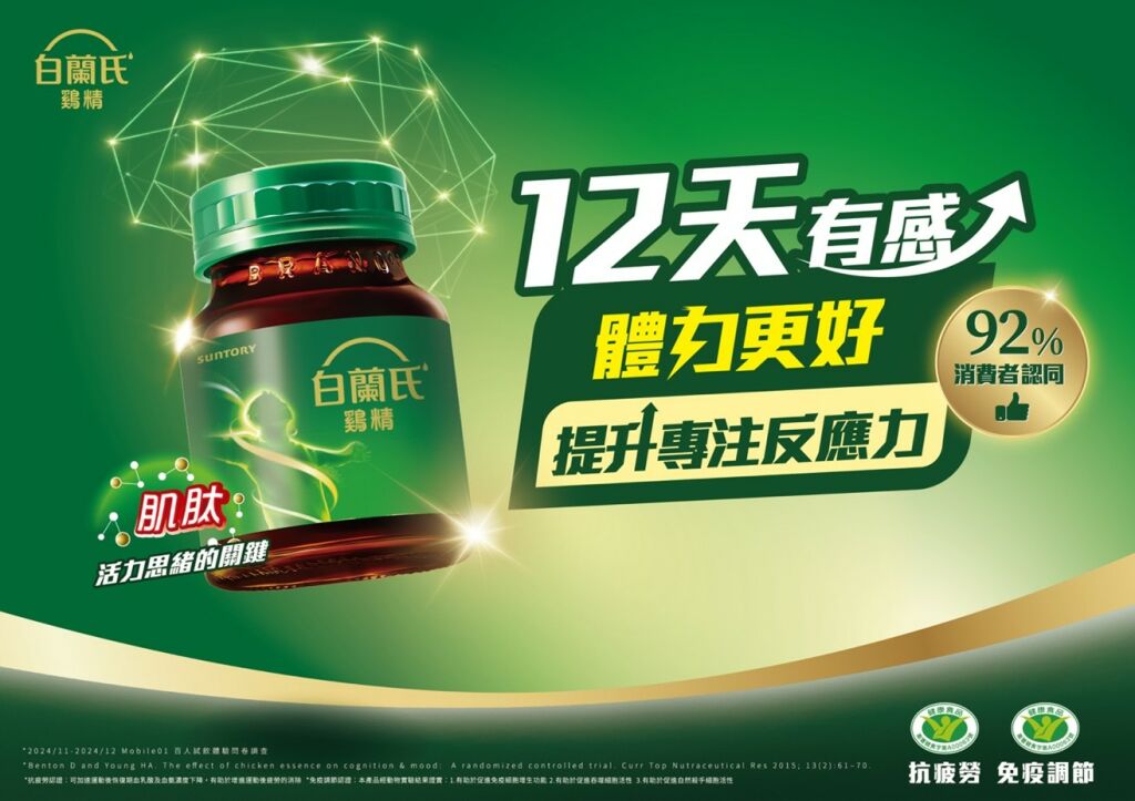 白蘭氏雞精同時擁有健康食品抗疲勞與免疫調節雙標章,搭配白蘭氏以獨家高溫高壓製程萃取出的「高濃度微分子肌肽」,有效補給身體與思緒中心所需能量,幫助你在高壓、高速的日常中保持清醒、穩定輸出,一整天都維持好的狀態。