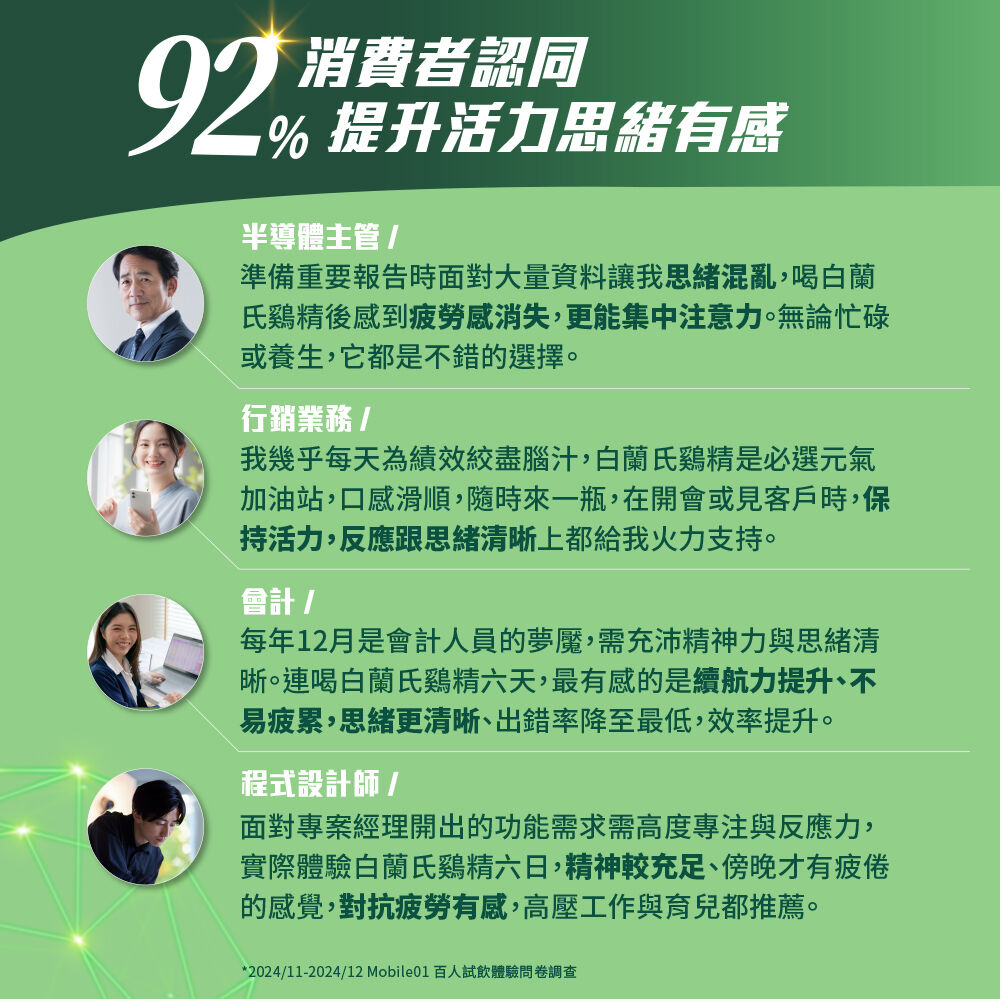 白蘭氏雙認證鷄精:92%消費者認同,體力更好,提升專注反應力,12天有感!
