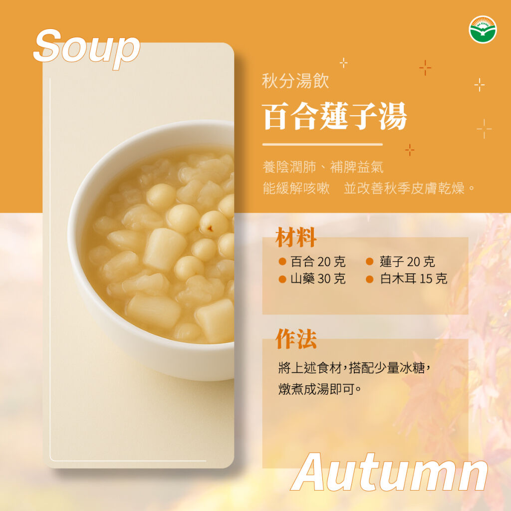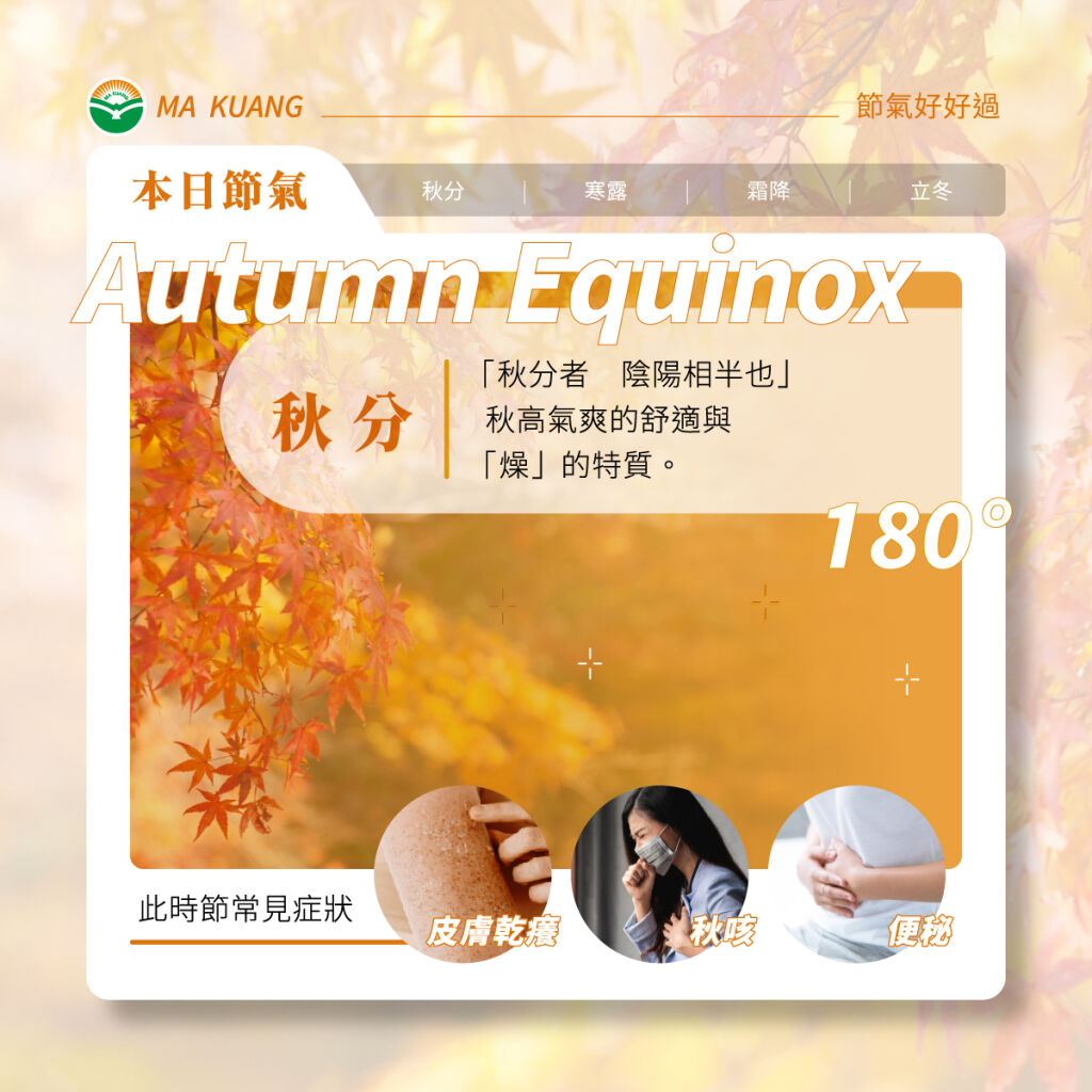 秋分是一個轉換的節氣,我們可以順應自然,由外到內調整身心。透過養陰潤燥的飲品、規律作息與適當運動,不僅能減少秋季常見的咳嗽、皮膚乾癢等不適,更能維持健安康的身心。