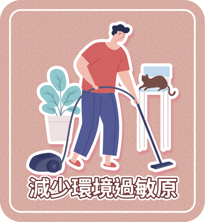 定期清潔家中塵蟎與灰塵,使用防蟎寢具、空氣清淨機與除濕機,避免地毯與厚窗簾。
