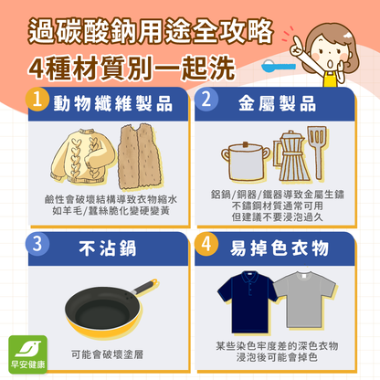 過碳酸鈉氧系漂白劑怎麼用?想用過碳酸鈉漂洗衣服、清洗衣機,比例該放多少?早安健康整理過碳酸鈉最強清潔攻略,從去除漬到通水管,一文搞定不踩雷!