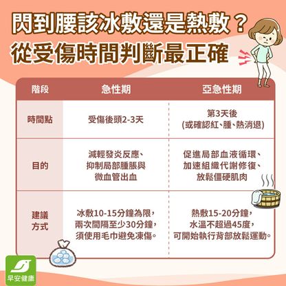 閃到腰痛到起不來?掌握受傷前48小時黃金急救期!了解正確冰熱敷時機、無痛側臥睡姿,以及護腰正確戴法,教你最安全的自救與舒緩法。