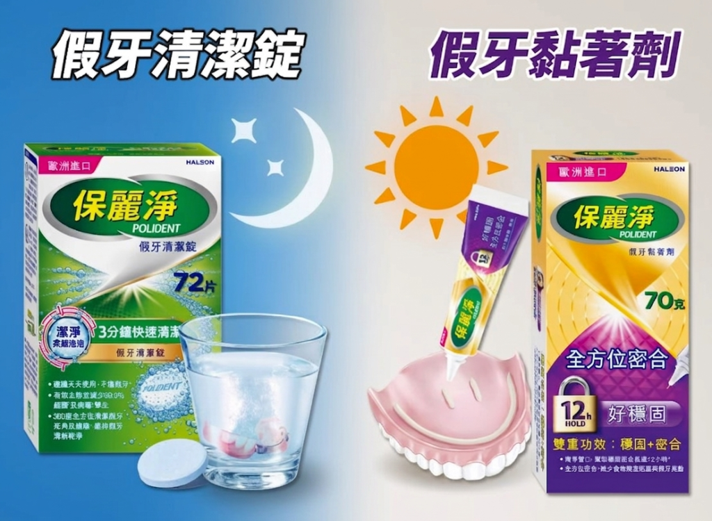 如對產品有任何問題,請直接聯絡保麗淨消費者服務專線 0800-212-259 使用前請詳閱包裝外盒說明、警語及注意事項。北市衛器廣字第115040121號,衛署醫器輸壹字第002055號 保麗淨假牙清潔錠(未滅菌)、衛署醫器輸壹字第006471號 保麗淨假牙淨白清潔錠(未滅菌)、衛部醫器輸壹字第021748號 保麗淨假牙清潔錠 局部式活動假牙用(未滅菌)、衛部醫器器輸壹字第021850號 保麗淨口腔護具清潔錠(未滅菌)、衛署醫器輸壹字第001416號 保麗淨假牙黏著劑(未滅菌)。英商赫力昂股份有限公司台灣分公司 台北市忠孝西路一段66號24樓Trademarks are owned by or licensed to the Haleon group of companies. [2026] Haleon group of com-panies or its licensor. PM-TW-POLD-26-00039