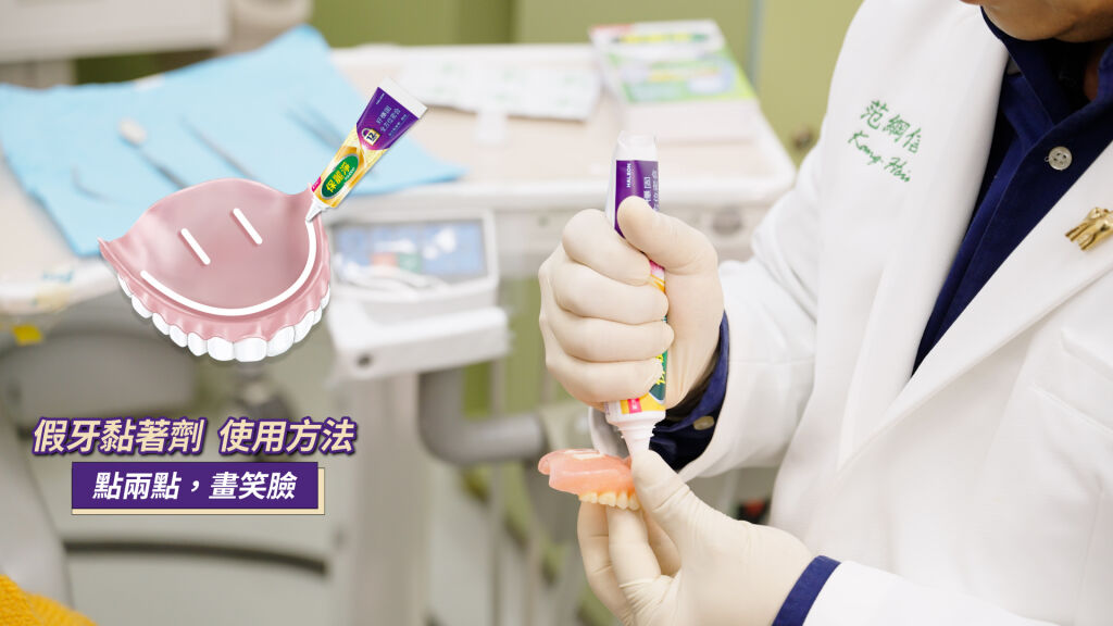 范醫師也說明真正讓假牙族吃得安心的關鍵,在於建立「每日假牙保養 1+1」的日常習慣:白天使用假牙黏著劑,穩定配戴、安心進食;晚上使用假牙清潔錠,做好深度清潔。