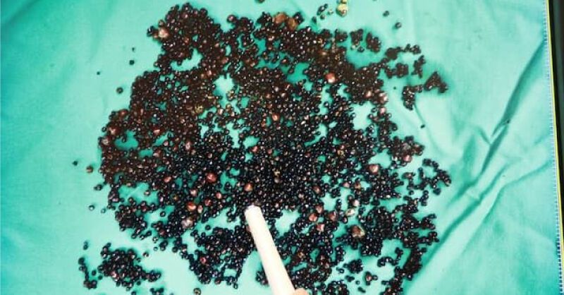 ▼從病人膽囊中取出的膽結石近5000顆,粒粒分明。