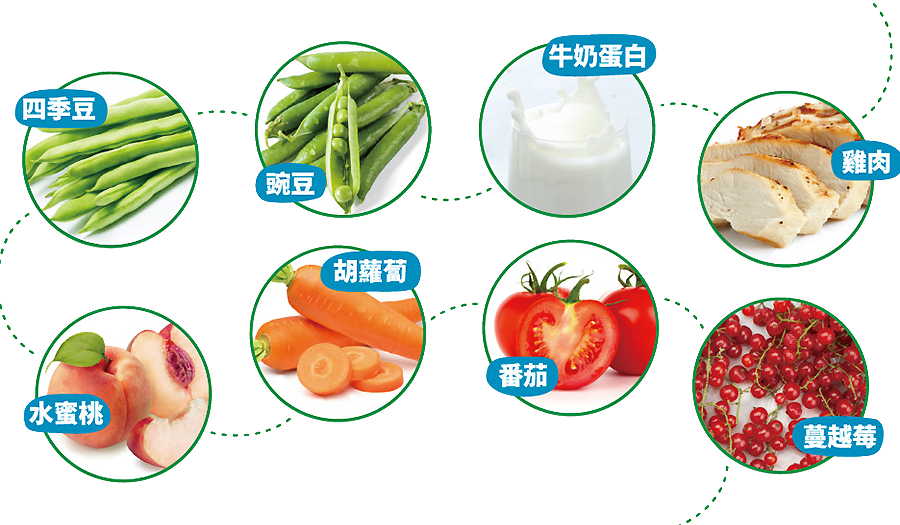 註1.根據2021年2月尼爾森市調公司前10大管灌品項,其天然食物包含雞肉、牛奶蛋白、碗豆、四季豆、水蜜桃、胡蘿蔔、番茄與蔓越莓。