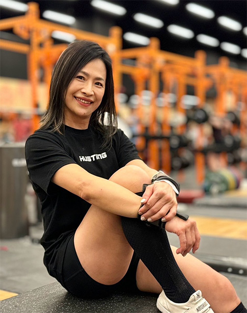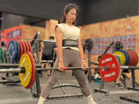「我以前開始會進健身房運動,是為了產後恢復!」視覺年齡一點都看不出來是5年級生的楊姐媽咪說,試過好多運動,以前先是上有氧課、騎飛輪,因為膝蓋不舒服而啟動肌肉訓練,又因為朋友邀約而愛上跑馬拉松,「有一天我看著鏡中的自己,發現『前凸後翹』全部消風,我的體型本來就比較直筒腰,再加上跑馬拉松曬得又黑又乾,變得毫無女人味,我想快速恢復肌肉而認識了健力三項,至今投入健力超過5年,讓我發現肌肉很美好!」